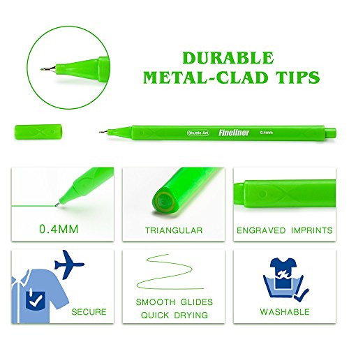 THE LARGEST FINELINER SET AVAILABLE: Shuttle Art Fineliner pack contains 100 unique, brilliant and gorgeous colors making it the largest set available on Amazon. Fineliner Pen have a 0.4mm extra fine fiber tip and great for sketching, card making, scrap booking, journaling and coloring.
