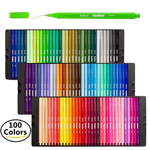 Shuttle Art Fineliner Pens, 100 Colors 0.4mm Fineliner Color Pen Set Fine Line Drawing Pen Fine Point Markers Perfect for Adult Coloring Books Drawing and Bullet Journal Art Projects