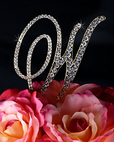 Unik Occasions Victorian Crystal Rhinestone Wedding Cake Topper, Small, Letter W, Gold