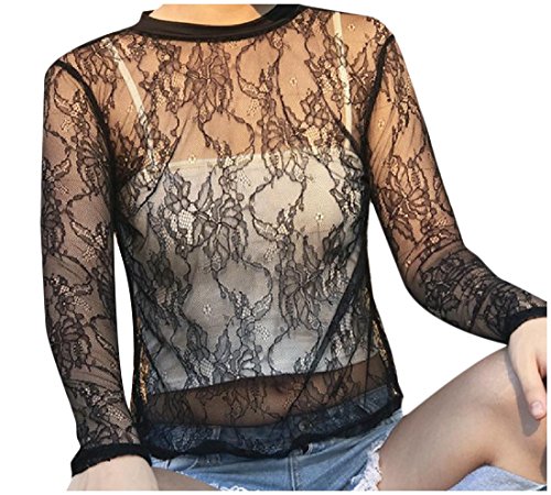-. Title : Tootess Womens Sexy Long Sleeve Lace Subtranslucent T-Shirt Top