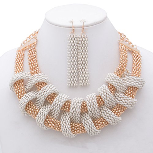 -. Title : Isabella Colored Mesh Chain Statement Necklace and Matching Earrings Set