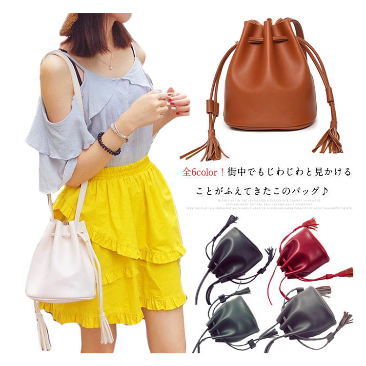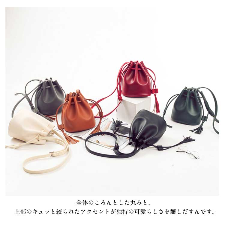 | 全6color!街中でもじわじわと見かけることがふえてきたこのバッグ♪丸いフォルムの大人可愛い巾着式ショルダーバッグの登場!全体のころんとした丸みと、上部のキュッと絞られたアクセントが独特の可愛らしさを醸しだすんです。開口部がガバッと大きく開くから荷物の取り出しもラクラク使いやすい。小さめミニバッグでもお出掛けに必要な物は入る見た目以上の収納力!!カラーバリエーションでおしゃれにメリハリをプラス。 | |