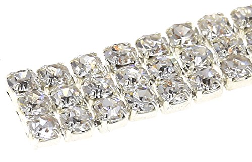 1 Yard 3 Rows Sew-On Banding Rhinestone Trim for Clothing Decorations and Bridal Bouquet Embellishments