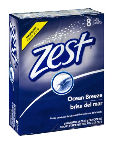 Zest® Ocean Breeze Refreshing Bars. 8 bars. Zestfully Clean!TMWith sea minerals. 8 bars/4. 0 oz (113 g) each.