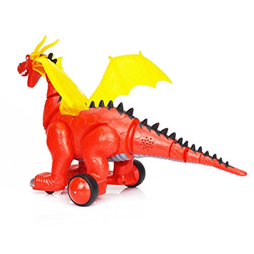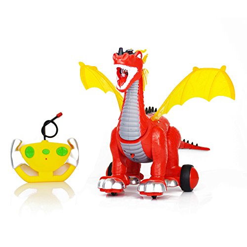 -. Feature : Name: SOWOFA flame dragon, have wings, can't really fly, remote control driving, real movement. / This dinosaur have two version , one with atomized flame , one without flame .You can choose the one you like at different price.This one without ATOMIZED FLAME . / More wonderful video ,please search at YouTube , key words is "SOWOFA RC Flying Dragon". / Features: Light Led ,dinosaur radio sounds ,wagging head and tail .FOUR FOOT is vehicle wheel , you also can regard it as a rc car which can sliding. / Material: thickening ABS Charged battery power.. Note:Original packing box is too large , so ship without original package box .