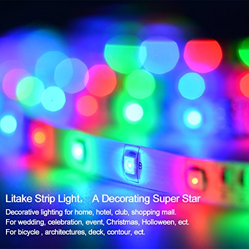 Features: Use the remote control to adjust the color, brightness, fade in/out, flash, strobe, ect. There 20 colors, 4 dynamic lighting modes. SMD 3528 LEDs which is low consumption, energy-saving and high quality. Run on DC12V. No overheating problems. Safe to touch. Flexible 5M strip light which is cuttable every 3 LEDs along the cutting marks. Flexible ribbon for curving around bends. Completely smooth and even light spread, solving the uneven luminous problems. Water-resistant IP65, use it in light rainy days. Specifications: LED type: SMD3528 LED quantity: 300 pcs Strip length: 5 meters / 16.4 feets Light color: RGB Input voltage: AC 100-240V Working voltage: DC 12V 2A Wattage: 4W per meter Luminous flux: 4lm per meter Ingress protection: IP65 Material: Glue Power plug: US Item weight: 130g / 4.58oz Package weight: 393g /13.85oz Package size: 17.5 * 17 *6.7m / 6.88 * 6.69 * 2.63in (L*W*H) Package list: 1 * 3528 strip light 1 * Power plug 1 * 24 keys remote control 1 * RGB control box 0