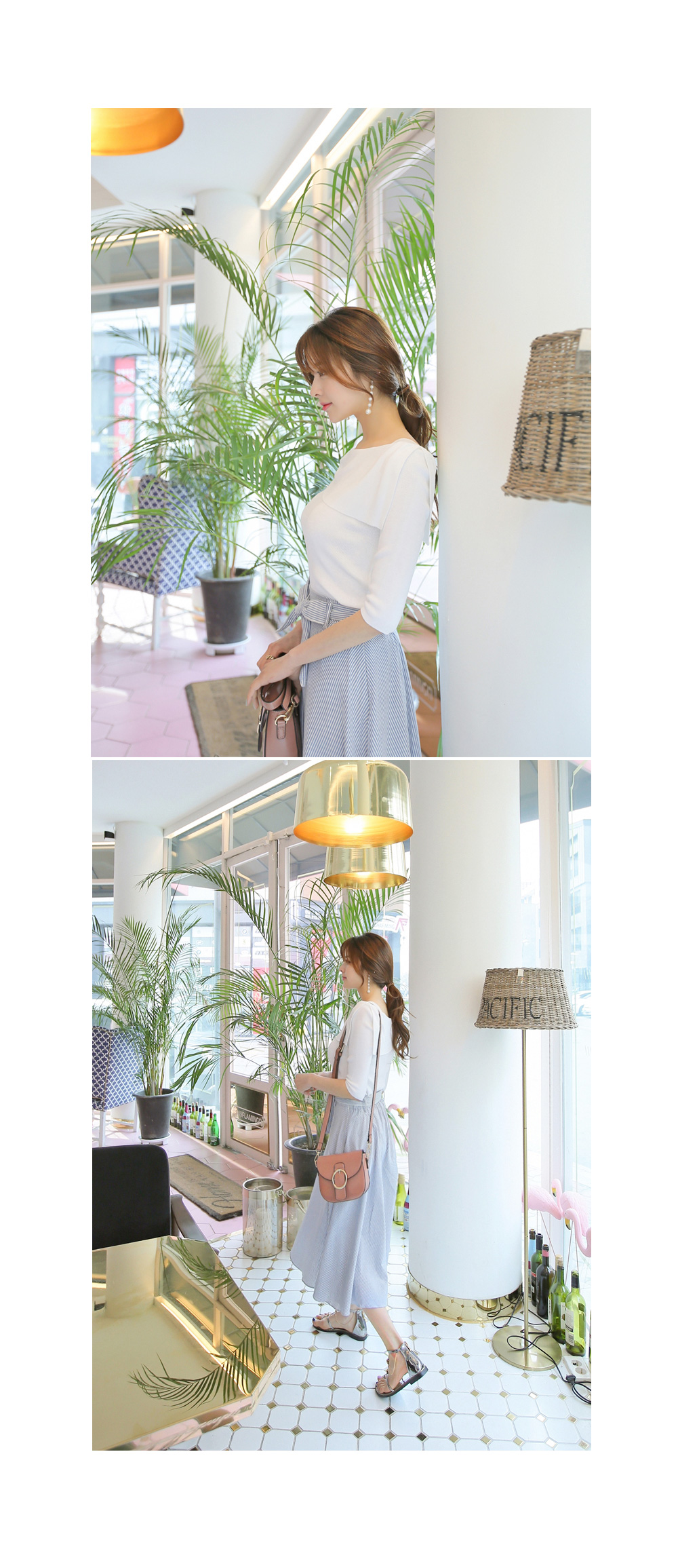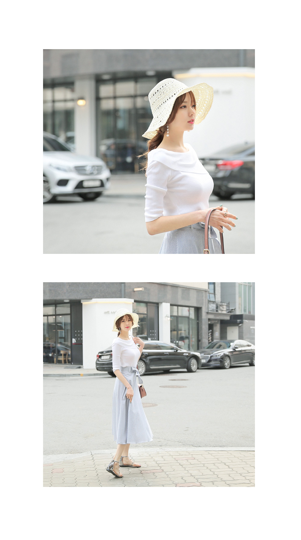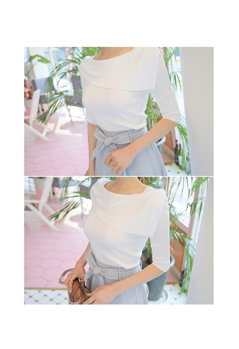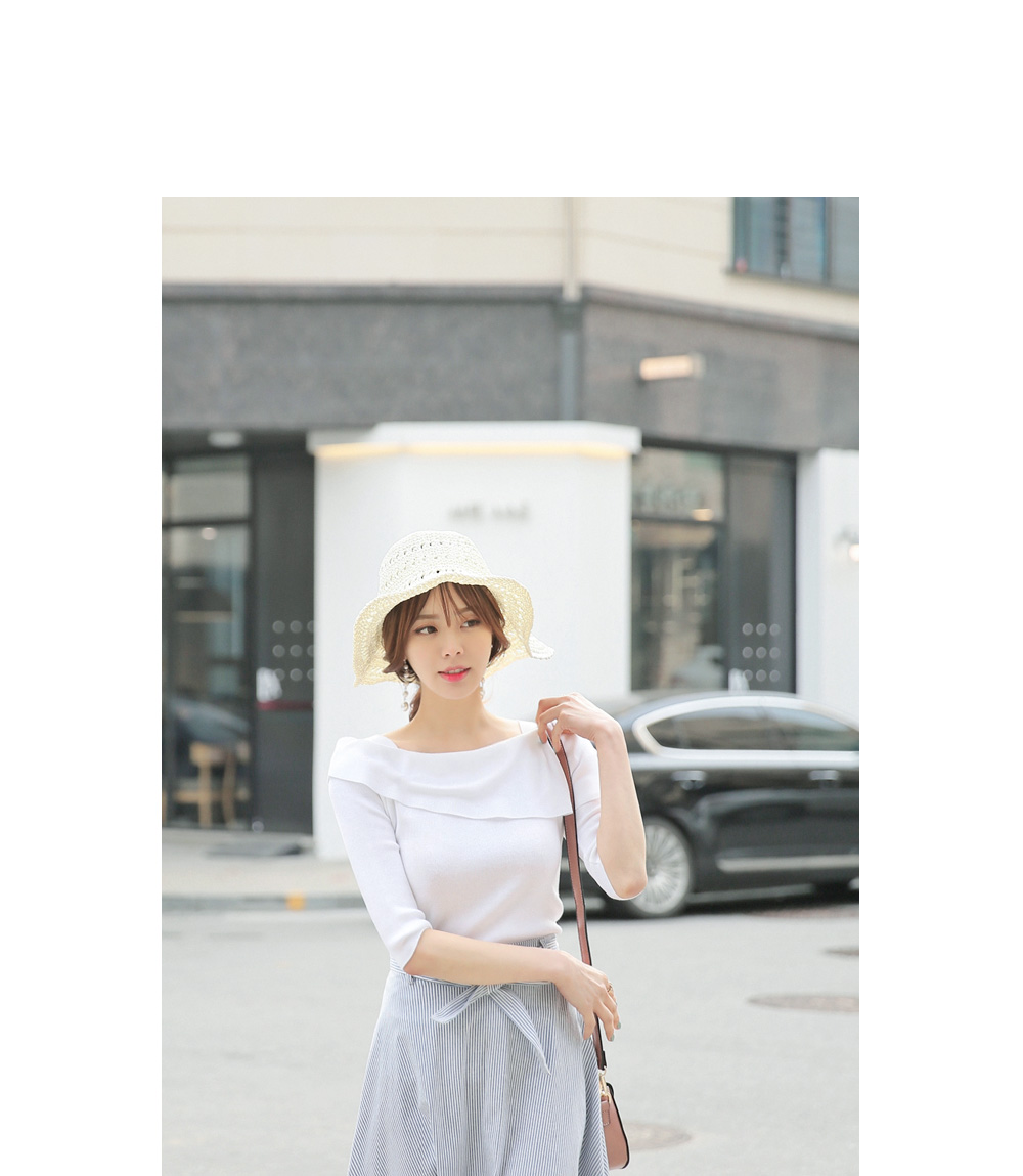 여성스러운 무드를 물씬 풍겨 줄 언발 니트탑 소개해 드려요.촘촘한 느낌의 니트소재로 탄탄하게 만들었구요~슬림하게 핏되는 라인으로 몸매를 이쁘게 만들어줄 니트에요!오프숄더 디자인이 은근 섹시한 네크라인을 선사해 주구요,언발로 디자인되어 포인트를 주었답니다 !양쪽 어깨부분 레이어드된듯 노출없이 입기좋아안정감 있는 착용감을 느껴보실 수 있는 아이템 이랍니다^^전체적으로 슬림한 라인으로 7부정도 소매기장으로 봄,여름,가을 꾸준히 사이즈 구애없이 누구나 착용 가능하며여리여리한 감성을 연출 해 드리구요~아이보리,베이지,블랙 베이직한 컬러로 페미닌한 무드까지 더해드렸답니다^^적당한 기장감으로 모델처럼 스커트와 손쉽게 매칭하셔도페미닌한 룩을 완성시켜주는 아이템 으로 추천 해 드려요!