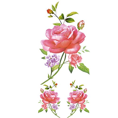 TAFLY Flower Tattoos Colorful Body Art Transfer Temporary Tattoo Sticker for Women 5 Sheets (Pink)