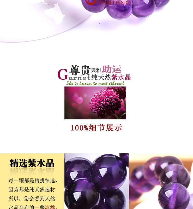 紫水晶象征着宁静、安全,据说还能带来灵感和智慧,它的另一个寓意就是象征爱情,进一步说就是增进人缘及异性缘,总结起来可以用神秘、浪漫、高雅来形容它。