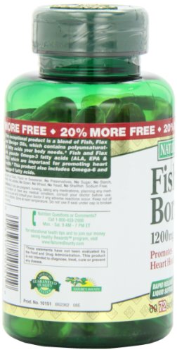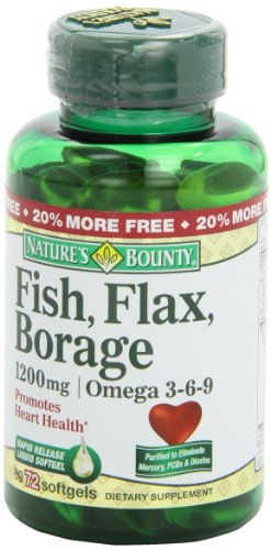 Nature's Bounty Omega 3-6-9 Fish Flax Borage 1200mg Softgel, 72-Count Bottle (Pack of 2)