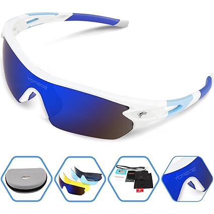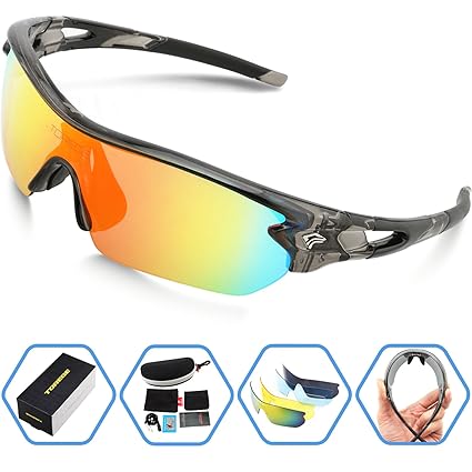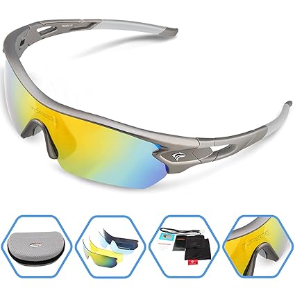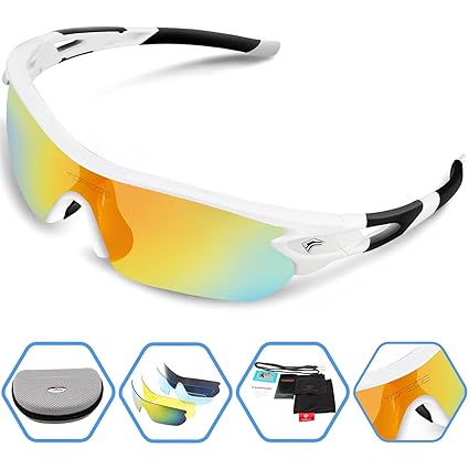 [Product Information]- FIVE INTERCHANGEABLE LENS- All the lens 100% UV400 protection coating, blocks 100% harmful UVA & UVB Rays. Restore true color, eliminate reflected light and scattered light,make the scenery more clear and soft and protect eyes perfectly. The Main one is colourful lense ,the yellow one is for night activities,the blue one is for beach,the clear one is for couldy,the balck one is polarized for driving and other activities.