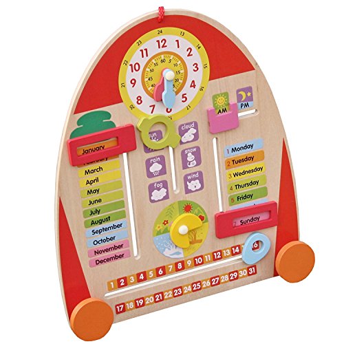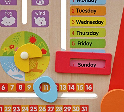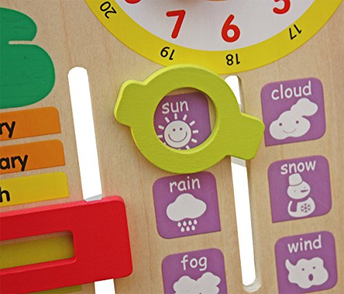 Cute and sturdy learning tool: 14" Tall Wooden Tablet to Learn Calendar, Time, Date, Weekdays, Weather and Seasons