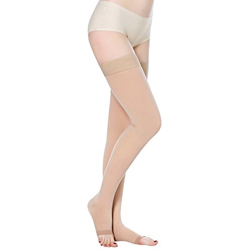 Thigh High Compression Socks, Firm Support 20-30 mmHg Gradient Compression Stockings with Silicone Band. Treatment for Running, Edema, Varicose Veins, Pregnancy, Nursing