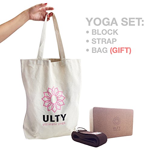 Cork Yoga Block 9”x6”x4” and Yoga Strap | Perfect Set for Yoga, Pilates, Fitness and Gym Activities |Bonus Natural Eco-friendly yoga bag for fitness gear and yoga props and accessories