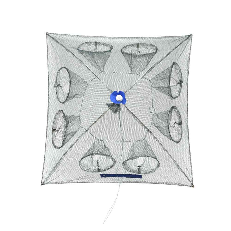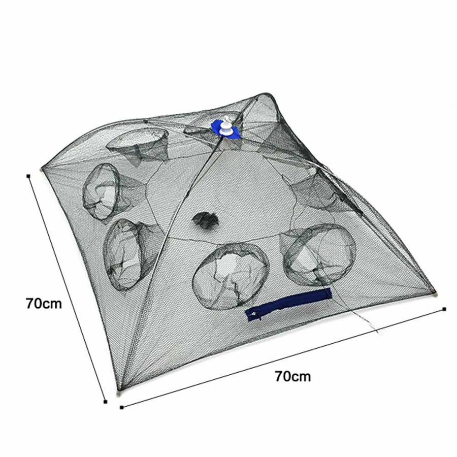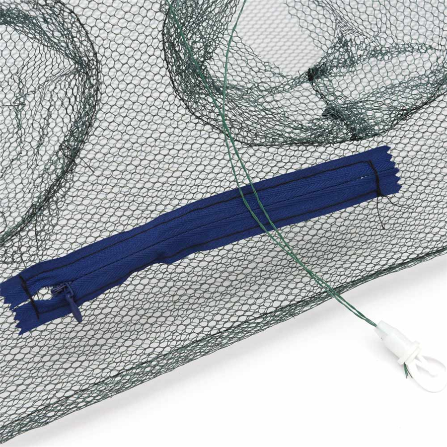 A wonderful tool for fishing lovers. With eight enters to catch more fish and one zipper to take out what you caught. Use with ease, just put some baits into the net, then put the net in water, and you can get some fish, shrimp, crab, lobster and crawfish!