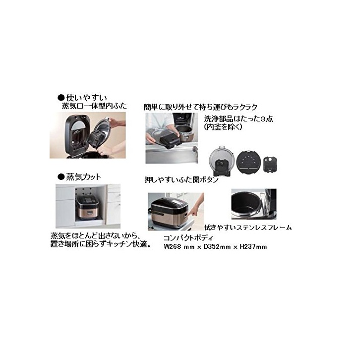 * 1.2기압에 비점을 105℃에 업.고온을 유지해 가열. * 히타찌 독자「압력 steam 지은 밥 ●밥이 떡 떡,어렴풋이 달콤하다 * 1.2기압에 비점을 105℃에 업.고온을 유지해 가열.뜸들임은 히타찌 독자적인 압력을 걸었(걸쳤) 상태에서 압력 steam에 확실히 뜸들인다. * 《무라》를 억제해 지은 밥 올린 신개발 고전열후솥【타입 철솥】 전열성이 뛰어난 두께가 있는 알루미늄 합금으로 철을 용사 했 타입 철솥과,그 특성에 맞춘 취사 제어에 상하의 지은 밥《무라》을 억제해 맛있게 지은 밥 인상.게다가(더구나)내 부중량은 약720g,가벼워 사용하기 쉽다. * 증기가 거의 나오지 않는이 나와 안전,두는 곳소로도 곤란하지 않습니다.