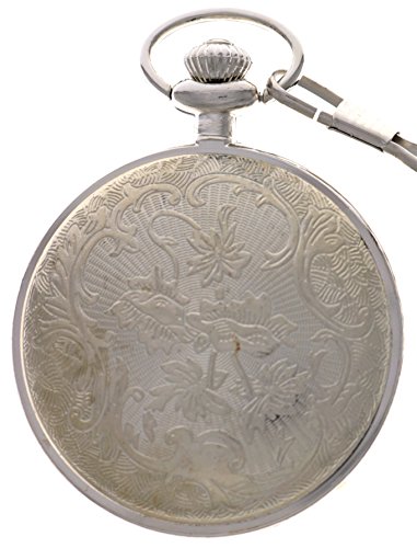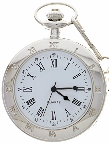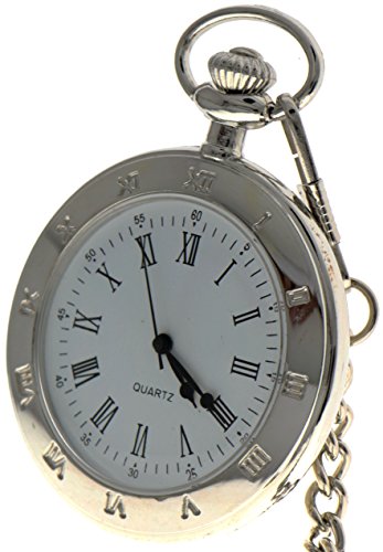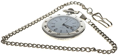 -. Title : New Brand Mall Silver Stainless Steel Case White Dial Roman Numerals Antique Pocket Watch with Chain