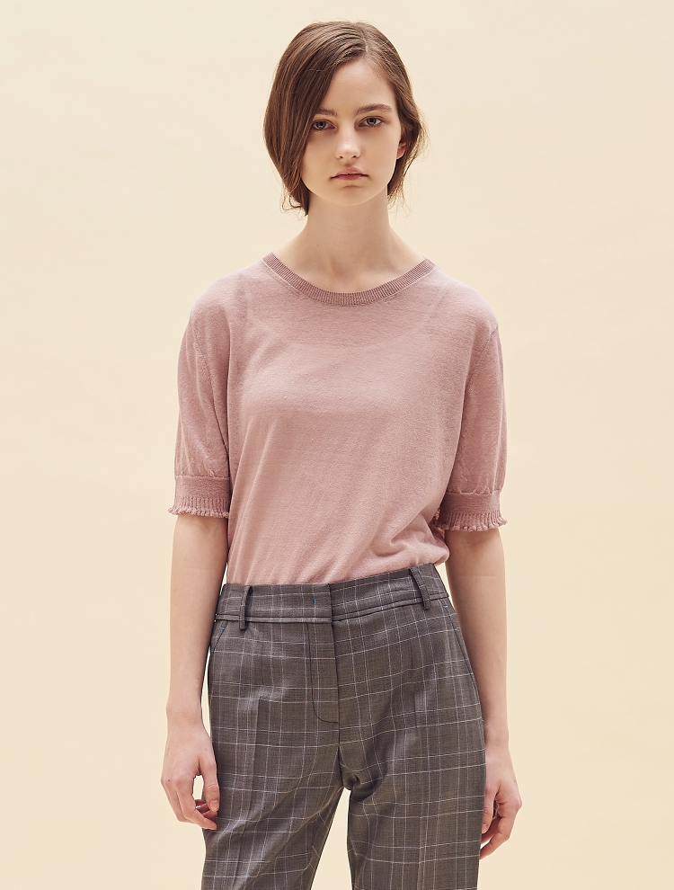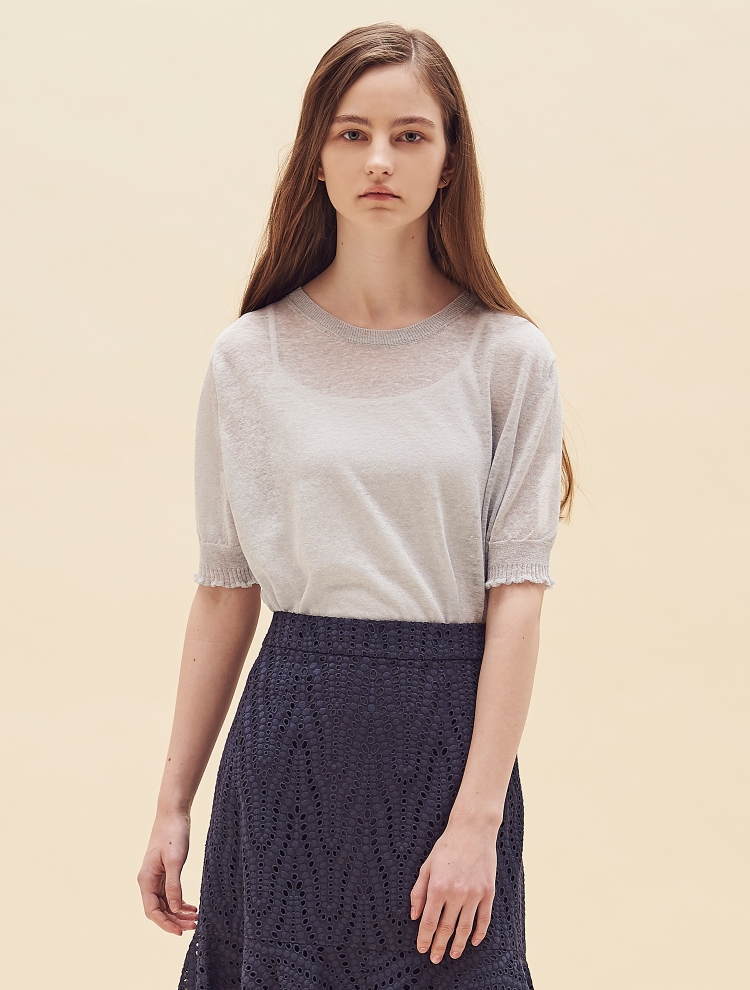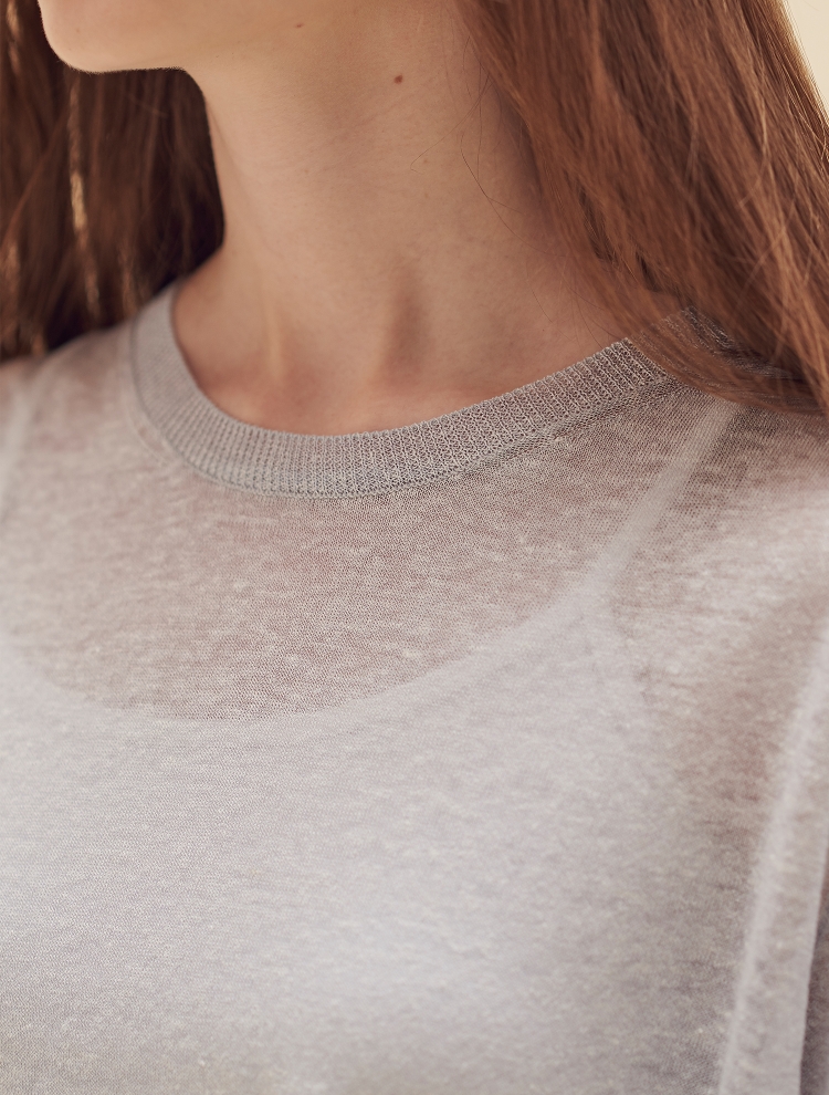 - 시어한 소재의 반팔 라운드넥 풀오버입니다.