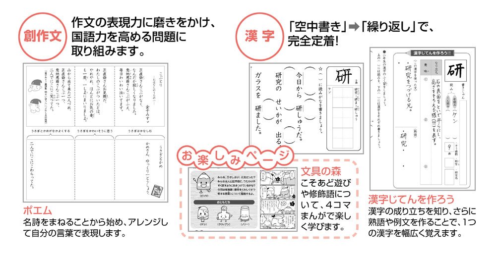 Writing text ● Activate right brain memory by reciting ● Thorough mastering of newly appeared Chinese characters and examples by 400% learning (3 times review) ● long reading comprehension 【contents】 ● Japanese third grader (vol.1 ~ 10 / body each