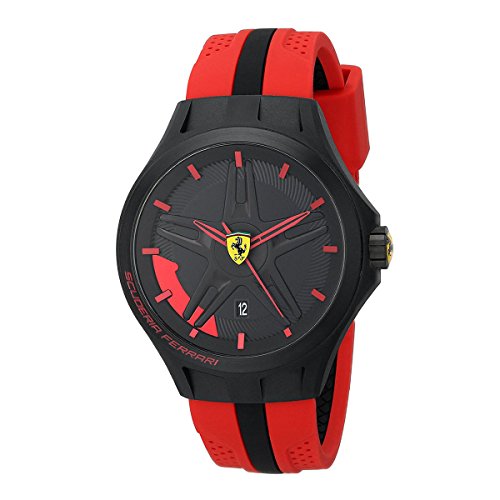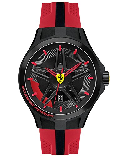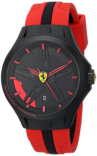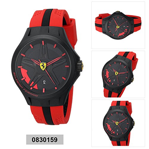 *Brand: Ferrari *Model: 0830159 *Condition: brand new with tags *Dial color: black dial with red hour stick indices *Features: date window *Hand color: red second hand, red / black hours and minutes hands *Bezel color black *Band color: red *Band material: silicone *Case material: stainless steel *Case width: 40 mm *Case thickness: 12 mm *Band width: 20 mm *Water resistance: 50 meters / 165 feet *Warranty: 2 year sasy420 warranty against mechanical failure 0 |