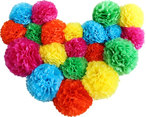 The next day everyone will be discussing your event because our beautiful paper flowers won't leave anyone indifferent ! Each set comes with 20 piece paper pompoms totally five rainbow colors, includes. Multi colored: cobalt blue (1*14inch+2*10inch+1*8inch); nephritis green (1*14inch+2*10inch+1*8inch); papaya orange (1*14+2*10inch+1*8inch); sun flower yellow (1*14inch+2*10inch+1*8inch); deep rose (1*14 inch+2*10 inch+1*8 inch) size .