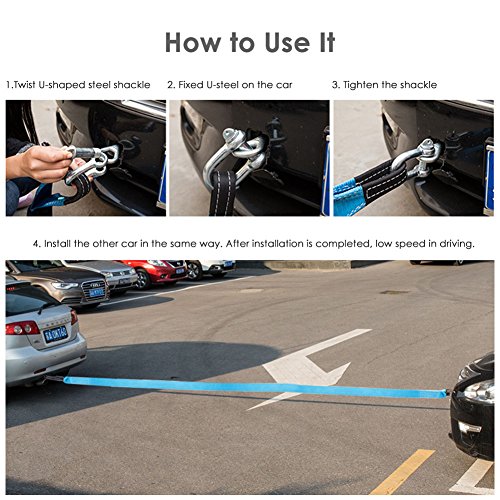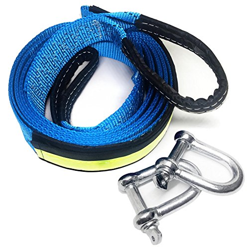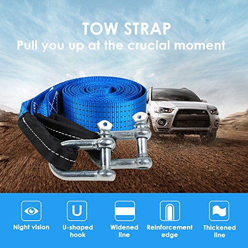 【DURABLE STRONG】: The tow strap is made of quality sturdy nylon polyester, thicken double seamed strap comes with 2pcs heavy duty steel shackle, makes it durable and safe to use while working.