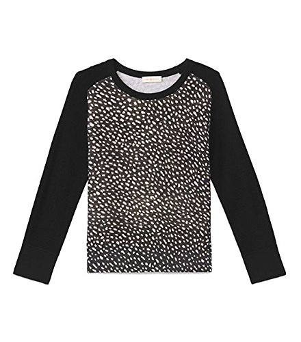 Pony dot-printed horizontal ribbed sweater with solid ribbed sleeves.
