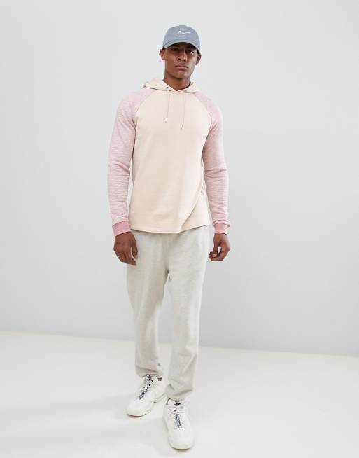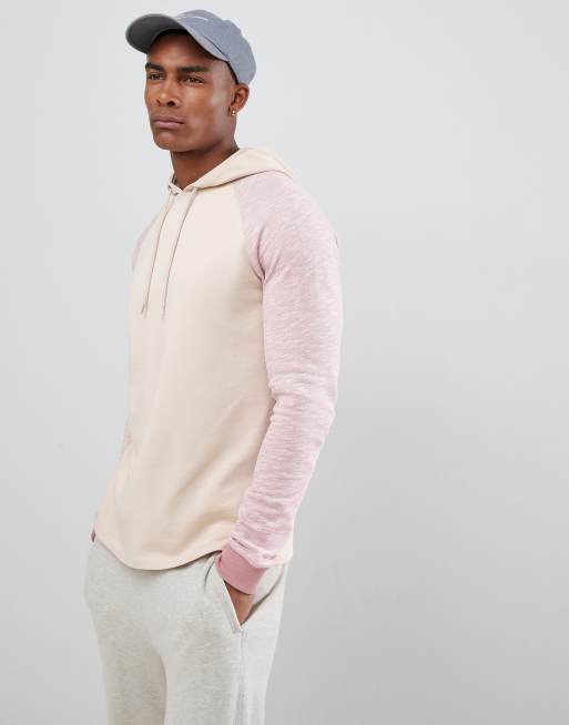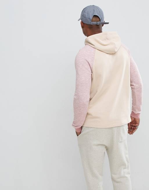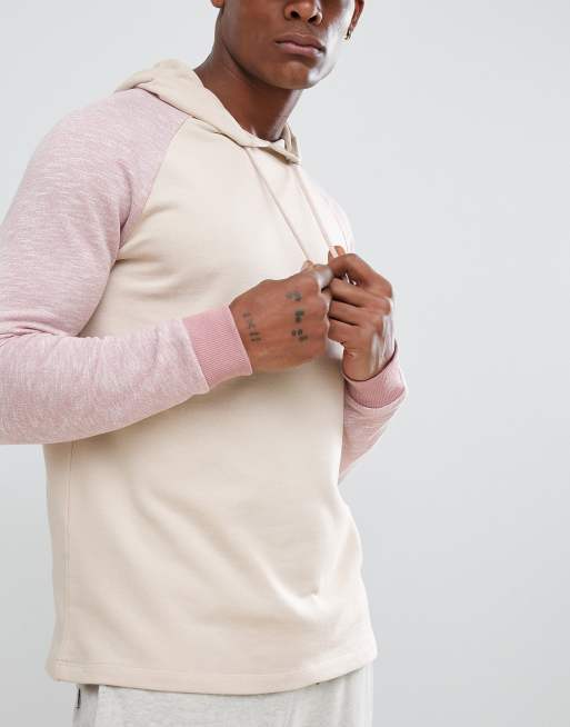 ASOS DESIGN hoodie in beige with contrast fabric interest raglan sleeve
