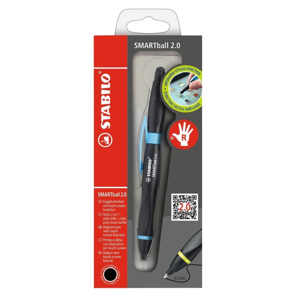 STABILO SMARTball 2.0 Right Handed Black Ink Ballpoint Stylus Pen - Black/Cyan
