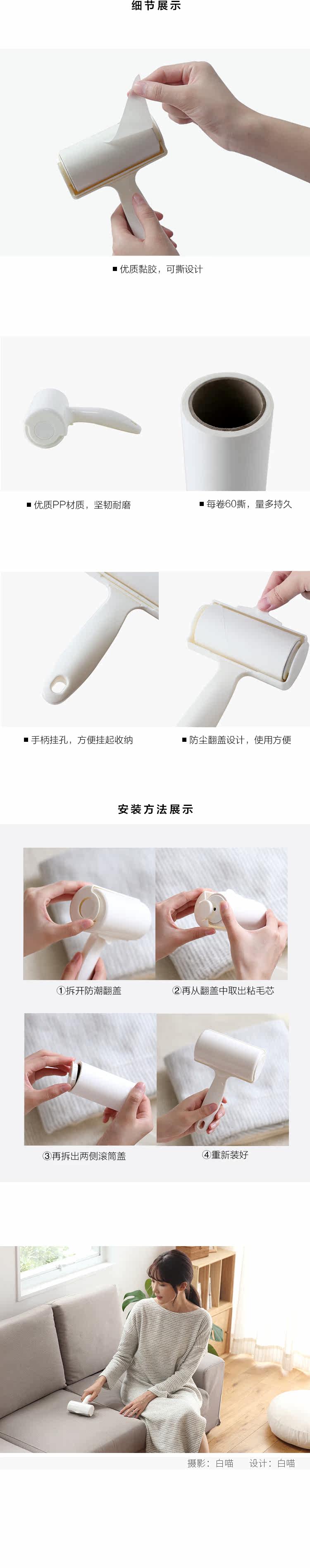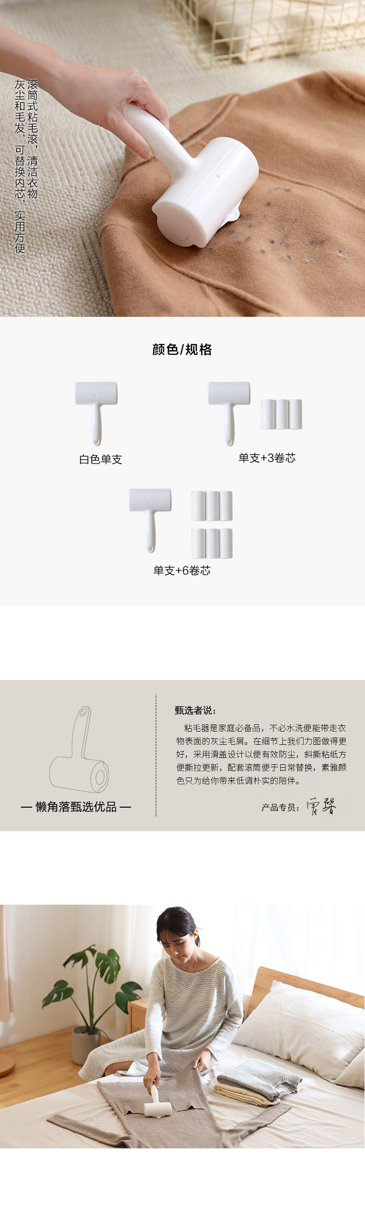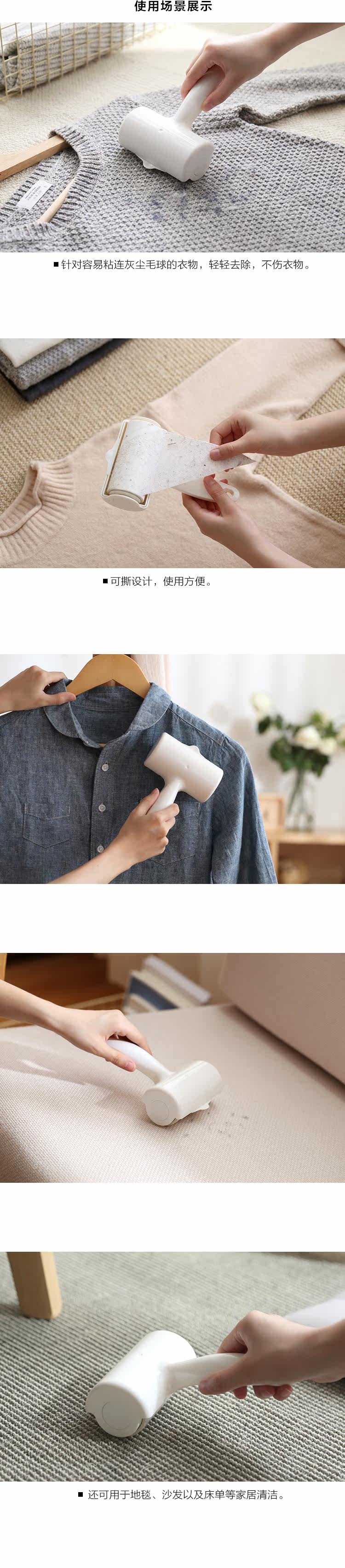 懒角落 衣物粘毛器 家用沙发除尘滚筒衣服可撕除毛器去毛刷 65936