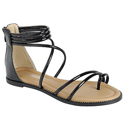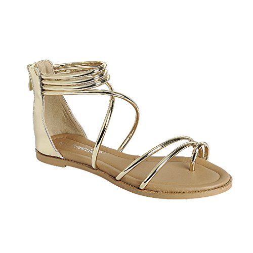 Binding : Apparel Product Description Summer is a time for cool conversations and good vibrations. Ride this style in this flat sandal. Featuring ring toe and multi ankle straps with back zip up closure, strappy design, and padded footbed for all day comfort 0