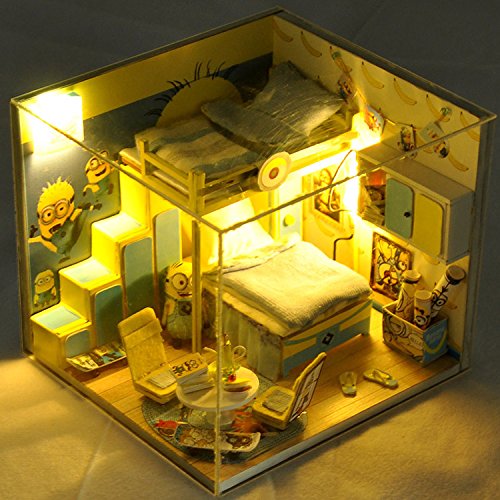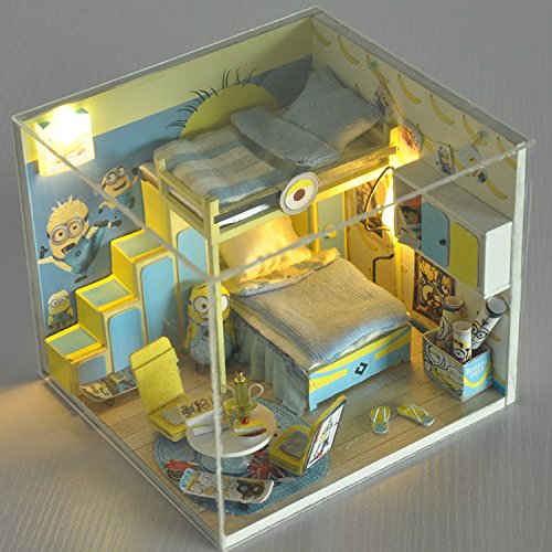 -. Title : Cuteroom Dollhouse Miniature DIY Dolls House Room Kit with Furniture+Cover Handmade Gift Toy Minions Party