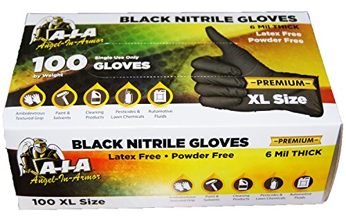 Black Nitrile Gloves 6 Mil Thick Premium Fully Textured Box of 100 (Large)
