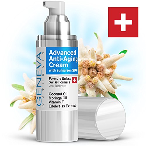 -. Binding : Misc. -. Brand : Geneva Naturals -. Feature : PROFESSIONAL SWISS FORMULA - Geneva Naturals uses a proP.R.Ietary Swiss Formula with Edelweiss extract for the most advanced anti-wrinkle and anti-aging skin care products on the market. / SUN & UV PROTECTION - Premium broad-spectrum SPF 20 sunscreen helps protect against the sun's harmful rays while still being able to wear your favorite makeup or Vitamin C Serum. Perfect for anyone seeking the ultimate daily sun protection. / FEATURED IN ALLURE MAGAZINE - "Achieve glowing radiant skin with Geneva Naturals luxurious yet affordable collection." (January issue) / BEST IN CLASS - Our professional Swiss formula creates a premium anti-aging day cream using powerful antioxidants from Edelweiss extract and other natural oils. Our cream helps stimulate cell regeneration and build collagen to diminish the appearance of fine lines, wrinkles, and blemishes. / SWISS DERMATOLOGIST APPROVED - All Geneva Naturals skincare products have been approved by leading Swiss Dermatologists. -. IsAdultProduct : 0 -. Label : Geneva Naturals -. Manufacturer : Geneva Naturals -. Model : No Model -. MPN : 865541000243 -. PartNumber : 865541000243 -. ProductGroup : Beauty -. ProductTypeName : BEAUTY -. Publisher : Geneva Naturals -. Size : 1 fluid ounce / 30 ml -. Studio : Geneva Naturals -. Title : Geneva Naturals Anti-Aging Facial Moisturizer with SPF - Professional Swiss Formula SPF 20 Sunscreen Features Coconut Oil, Vitamin E, Edelweiss Extract For Everyday Sun Protection