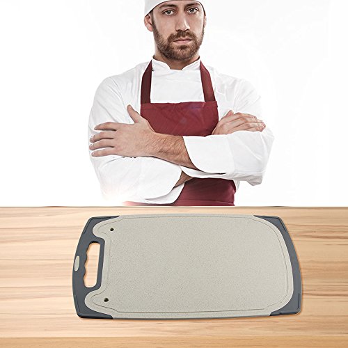 - Non slip edges made of food grade plastic to reduce board movement on the bench,non-toxic and eco-friendly,without toxic substance,New biodegradable material,which will self decompose in the soil.You can smell the wheat flavor which is healthy and not damage to body.