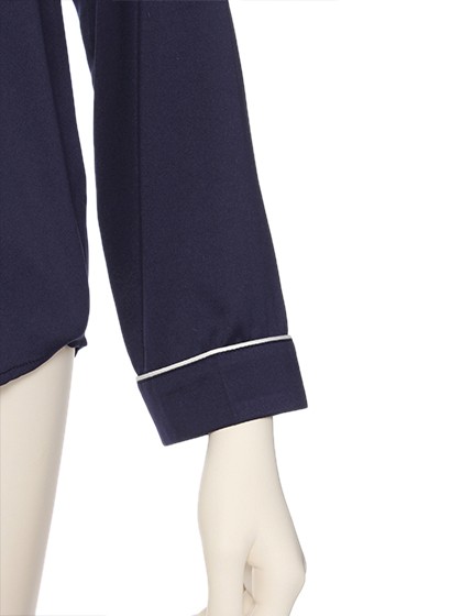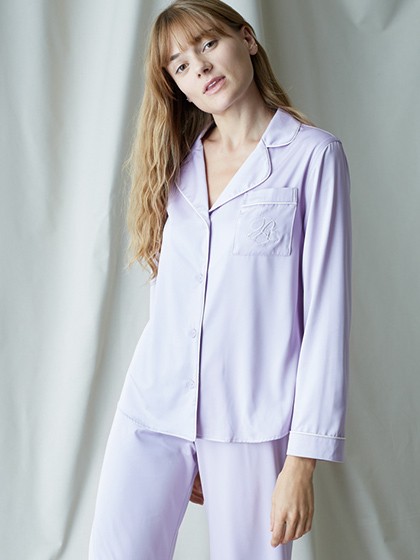 不動の人気を誇るシャツ型パジャマが、より肌触りのいいシルキータッチのサテン生地でリニューアル。光沢を抑え、より上品な仕上がりに。