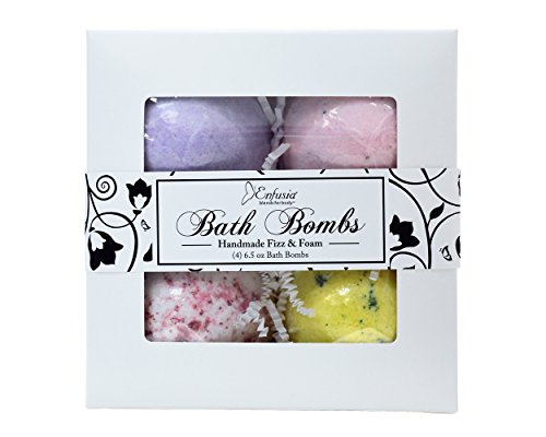 Our 4 best sellers: Lavender, Muscle, Let's Get Naked & Lemongrass Fizz & Foam Bath Bombs. Made by hand in small batches using food grade ingredients. Enfusia fizz and foam bath bomb essential for any bath. Essential oils and natural fragranceFeature