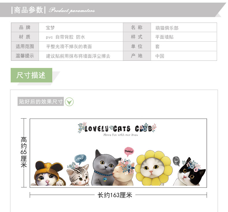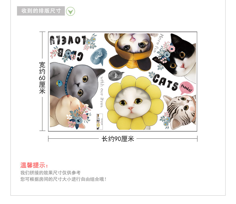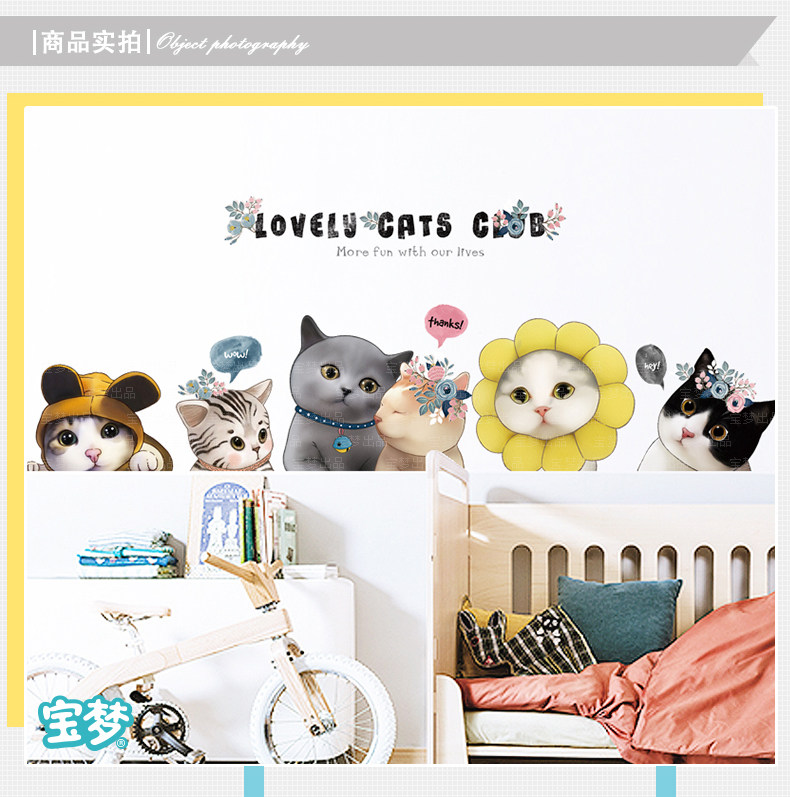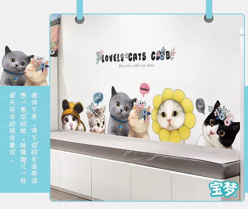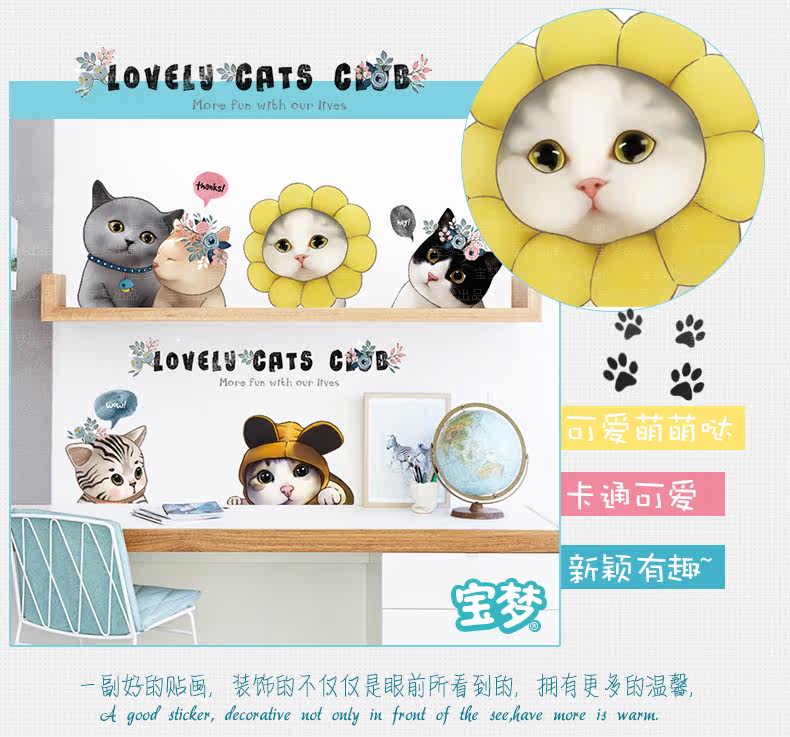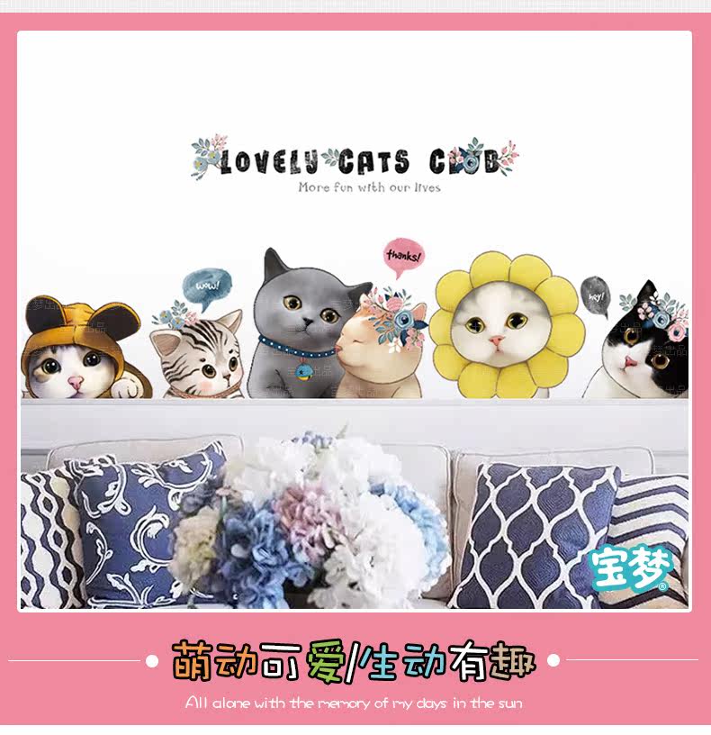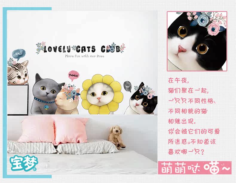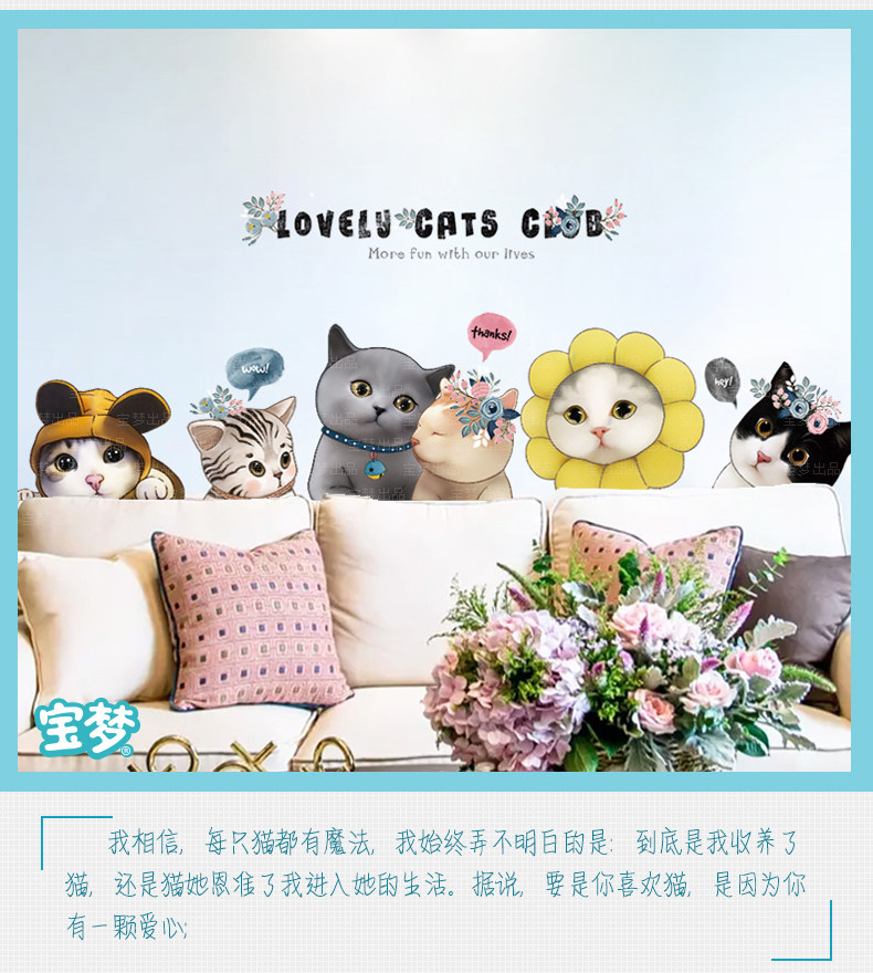 可爱小花猫咪墙贴纸创意卡通卧室床头装饰品贴画客厅沙发背景贴纸