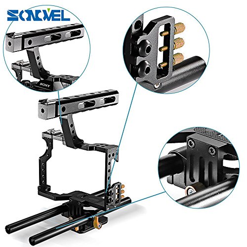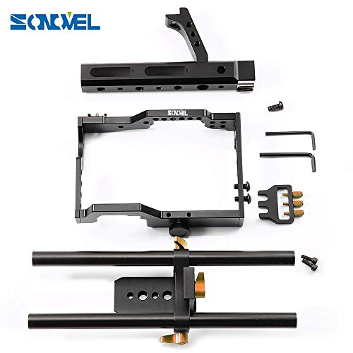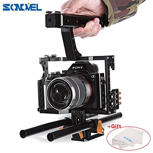 Sonovel Aluminum Alloy Camera Video Cage Film Movie Making Kit 15mm Rod Rig Camera Video Cage for Sony A7 A7r A7s GH4 A6300, Panasonic GH4 to Mount Microphone,Monitor,Video LED Light,Follow Focus