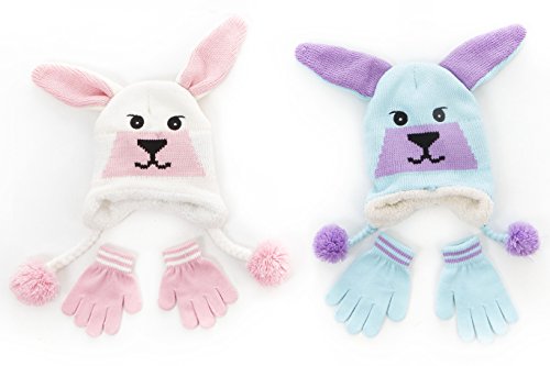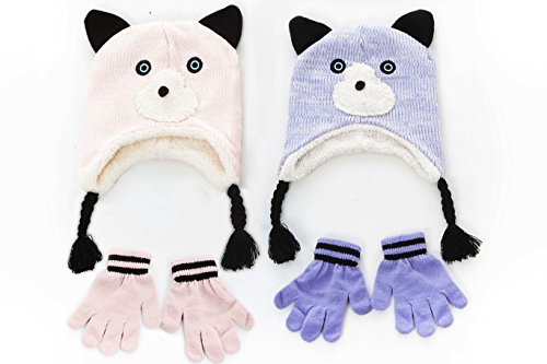 S.W.A.K Toddler Girls Knit Hat with Ear Flaps And Gloves Sets
