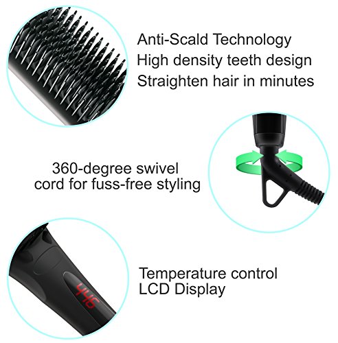 The design of the brush is handy and user-friendly, and you will be able to create a great look even when you use the straight up ceramic straightening brush for the first time. Thanks to the safe-for-scalp anti-scald hair hot comb teeth, the brush is 100% safe for you to use. In addition, the teeth massage your scalp and stimulate healthy hair follicles. It doesn't matter whether you want to wear your hair completely straight or bump the ends to give them some curls, with our hair brush it will take anywhere from 5 to 15 minutes to create a perfect look! Curly hair is no longer an issue. To ensure safety, black heated brush will shut off automatically after 60 minutes of use (automatic shut off). We have developed the brush with a swivel cord, so it won't hamper your movement while you are doing your hair. Click "ADD TO CART" button at the top right of this page to get a great Japanese quality solution 0