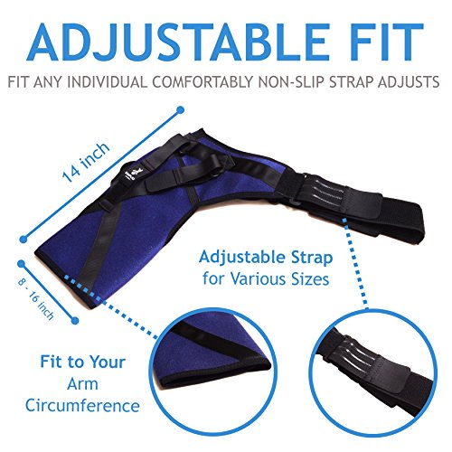 - UNIVERSAL SIZE: Easy to put on and adjust. Fits men and women from XS - XL. Can be worn on left or right shoulder ( Arm size: 8''-16''). Our shoulder strap brace can be worn over or underneath clothing throughout the day or while sleeping. Provides added support for everyday tasks at home or at work, during your workouts, sport activities or when traveling. We also added a Complete Digital eBook which we hope to enjoy while improving your lifestyle, mind and diet fitness.