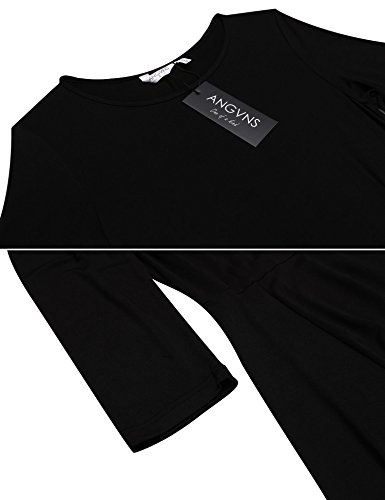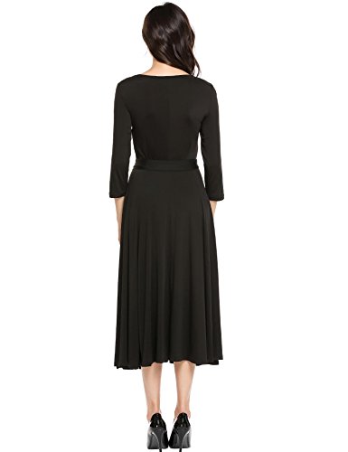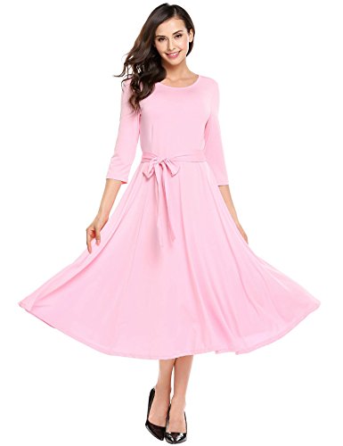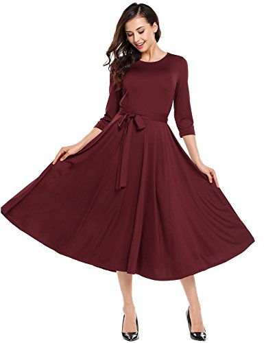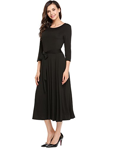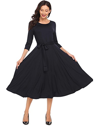 Women Casual Scoop Neck Vintage 3/4 Sleeve Retro Cooktail Party Vacation Business Swing Dress with Belt made of 95% Rayon 5% spandex