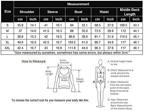 Size: There are 5 sizes (S, M, L, XL, XXL) available for the following listing. please allow 1-2cm differs due to manual measurement, thanks (All measurement in cm and please note 1cm=0.3937 inch)