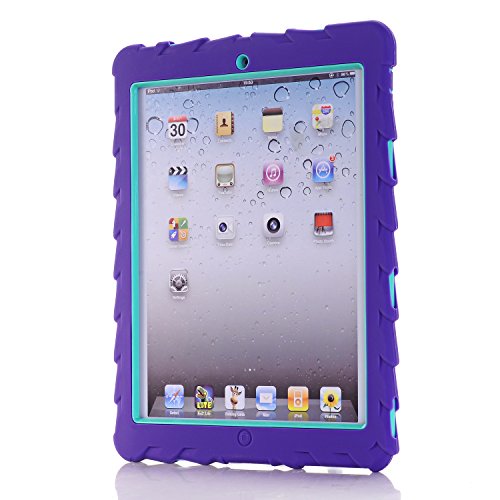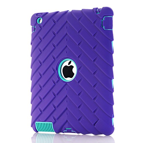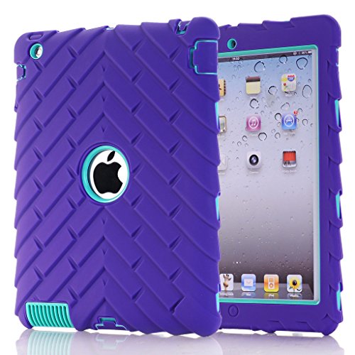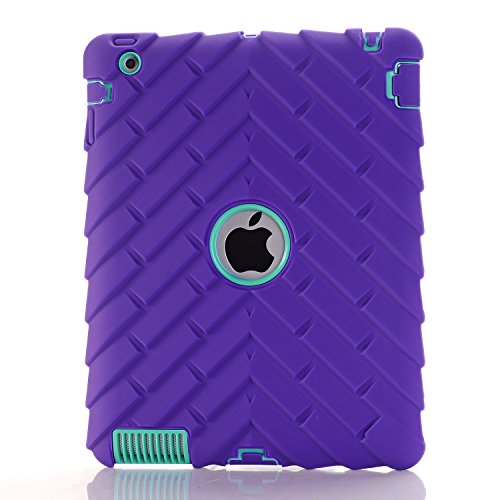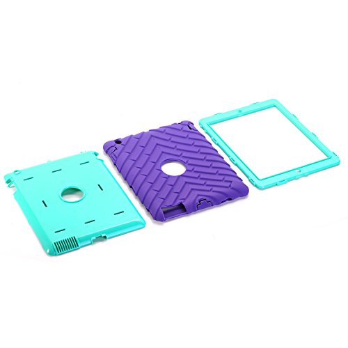 iPad 4 Case,iPad 2 Case,iPad 3 Case, Heavy Duty Shock-Absorption Three Layer Armor Defender Protective Case for iPad 2/iPad 3/iPad 4 (Purple+Mint Green)