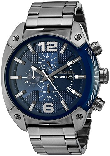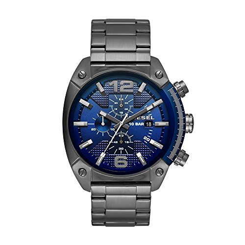 Studio : Diesel Watches Publisher : Diesel Watches Binding : Watch Product Description Stainless steel case. Stainless steel bracelet with fold-over, double push-button release. Round face. Three-hand analog display with quartz movement. Dial features gunmetal-tone hands and hour markers, three subdials, minute track, and Diesel detailing. Chronograph functionality. Water resistant. Display case included. Imported. 0