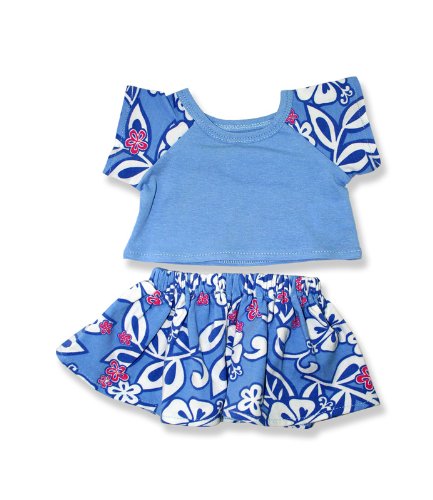-. Feature : Blue teddy bear outfit / blue shirt with floral pattern sleeves / matching floral skirt / fits 15 inch plush / 2 piece outfit