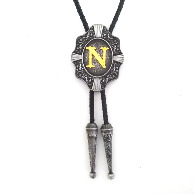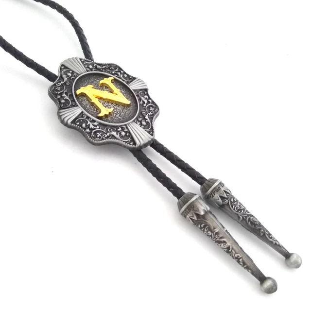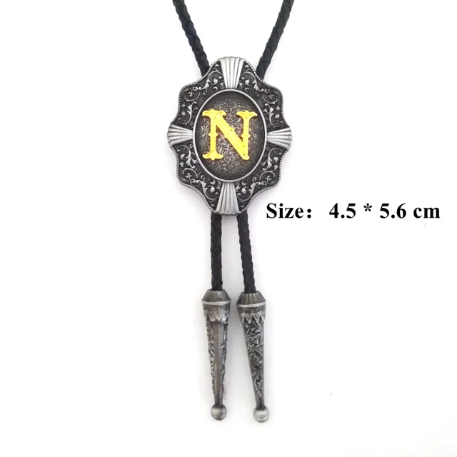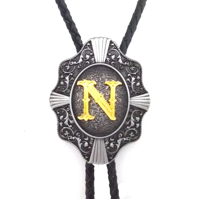 | [해외]웨스턴 카우보이 볼로 타이 Balck의 PU 가죽 금속 버클 골드 편지 "N" 소매 도매 정의 볼로 타이 |