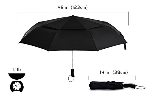 -. Binding : Misc. -. EAN : 0713831376984 -. Feature : What is the most important quality for a good umbrella? The answer is that it can continuously provide a shelter for you in rainy days. This is what Yadacme has been doing. Our classic black automatic folding outdoor umbrella can solve all your worries about rainy days. / Innovative 210T double wind-resistant canopy - our umbrellas adopt double wind-resistant umbrella cloth, so they have very strong anti-wind capacity; they also apply automatic opening design. It only takes one second to open the umbrella, so you do not need to hurry when the rain and wind come. / Oversize - the diameter of the umbrella cover is 49in (123cm), large enough to fully protect you and your friends away from the rain. With an ergonomic handle, you should not be tired when using the umbrella. / Portable and lightweight - the umbrella adopts ultra-light hollow aluminum alloy with quality wind-resistant resin material. It weights only 1.1lb (500 grams) for such a large size, and its folding length is 14in (37cm). Most backpacks are able to carry it, or you can put one in your car. / Commitment to quality - if you need any information, you can ask us. We will sincerely reply you immediately. After purchase, no matter what kind of problem appears, you just need to send an email and we certainly will solve the problem in time. We are willing to do anything to let you feel our sincerity. -. IsAutographed : 0 -. IsMemorabilia : 0 -. Label : Yadacme -. Manufacturer : Yadacme -. ProductGroup : Sports -. ProductTypeName : SPORTING_GOODS -. Publisher : Yadacme -. Studio : Yadacme -. Title : 49-inch Large Size Umbrellas, Yadacme Compact Travel Umbrella With Windproof Double Canopy - Auto Open, Sturdy and Portable -. UPC : 713831376984