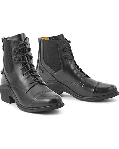 Studio : Ovation Publisher : Ovation Binding : Apparel Product Description For those who require great attention to detail, boots from Ovation will work perfectly. These Ovation Synergy Laced Paddock Back Zip Boots are made of breathable synthetic outer material with genuine leather lining, front lacing, and a back zip. Never leave your stable without riding and equestrian gear from Ovation. 0